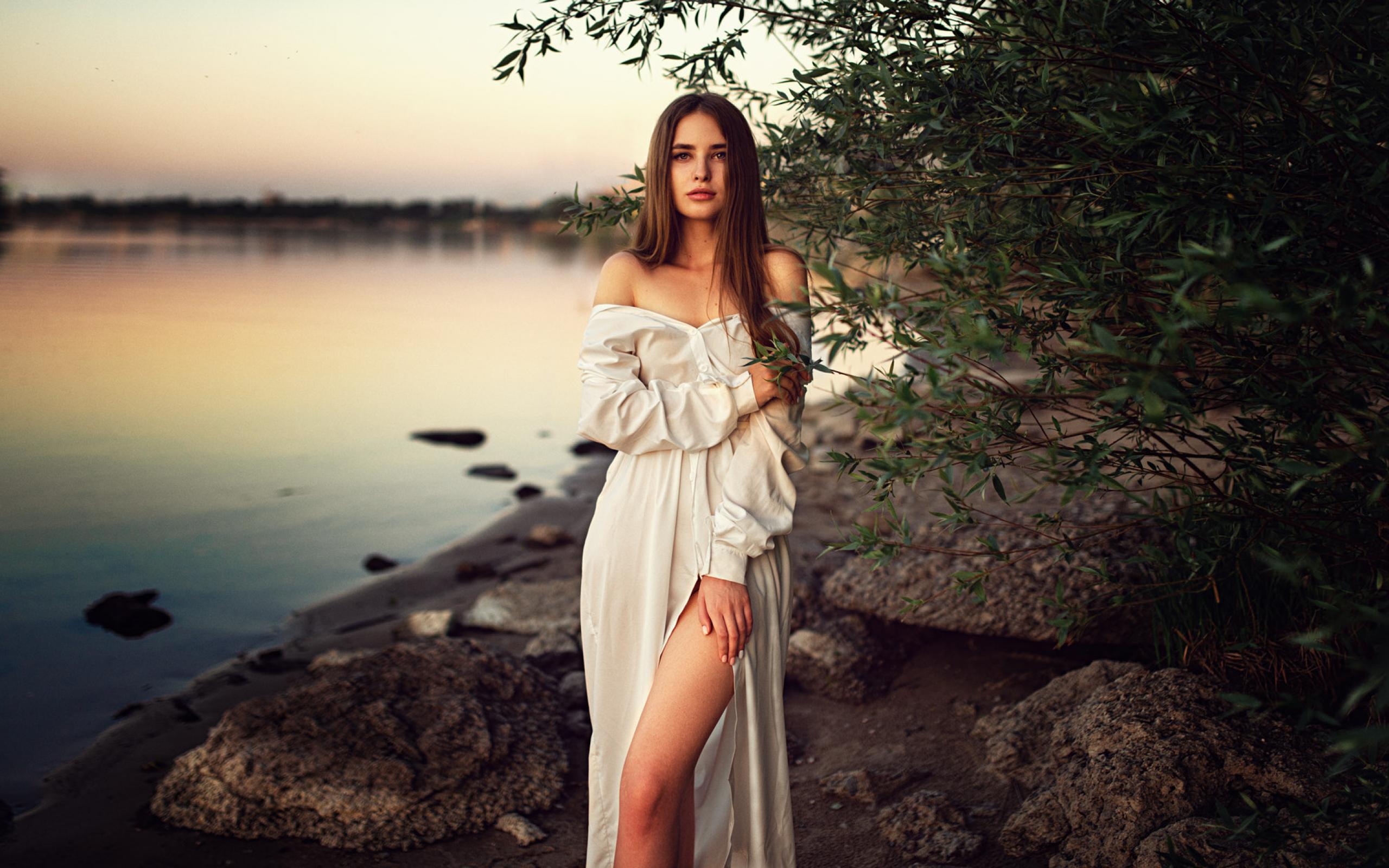 Wallpaper Girl in a beautiful white dress near the water