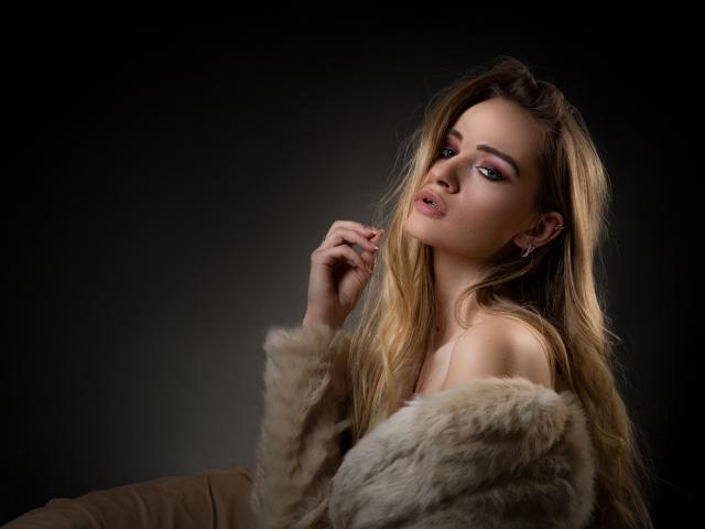Wallpaper Beautiful girl in a fur coat on a gray background