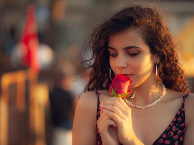 Wallpaper Young tender girl with a red rose in her hand