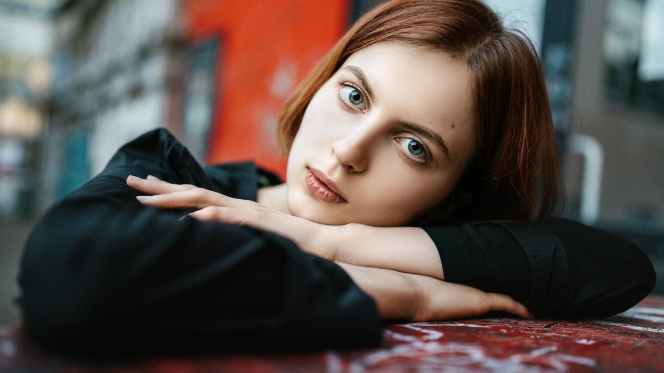 Wallpaper Beautiful red-haired girl with green eyes in a beautiful dress