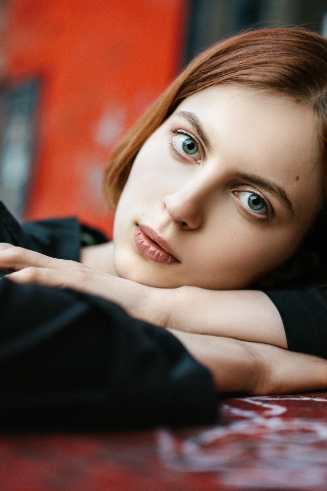 Wallpaper Beautiful red-haired girl with green eyes in a beautiful dress