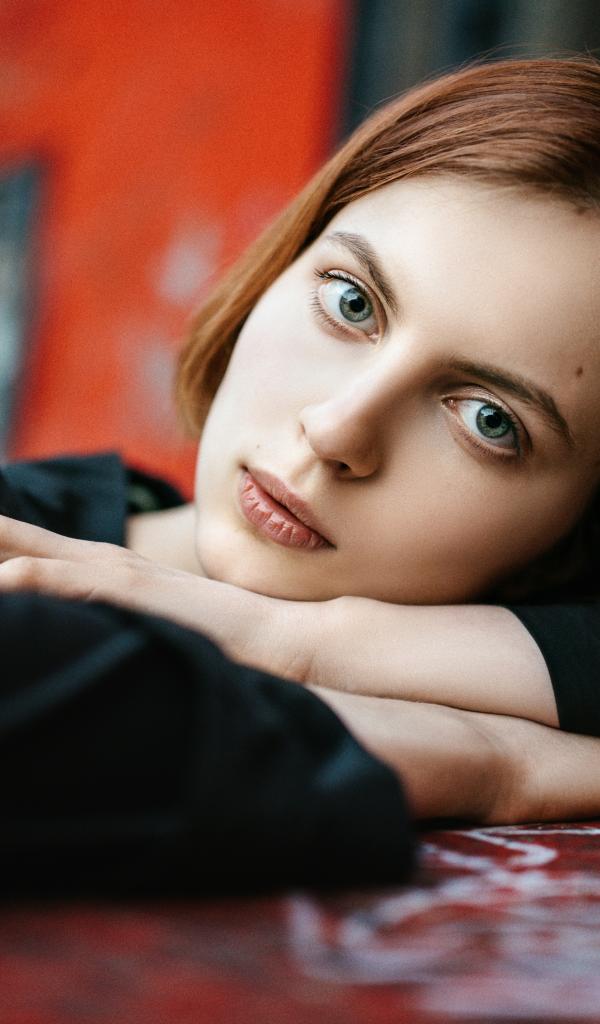 Wallpaper Beautiful red-haired girl with green eyes in a beautiful dress