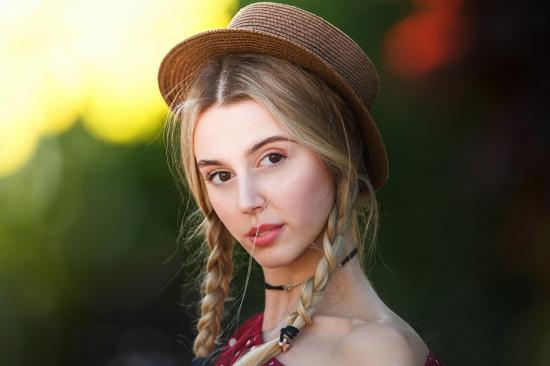 Wallpaper Brown-eyed girl with braids on her head in a hat