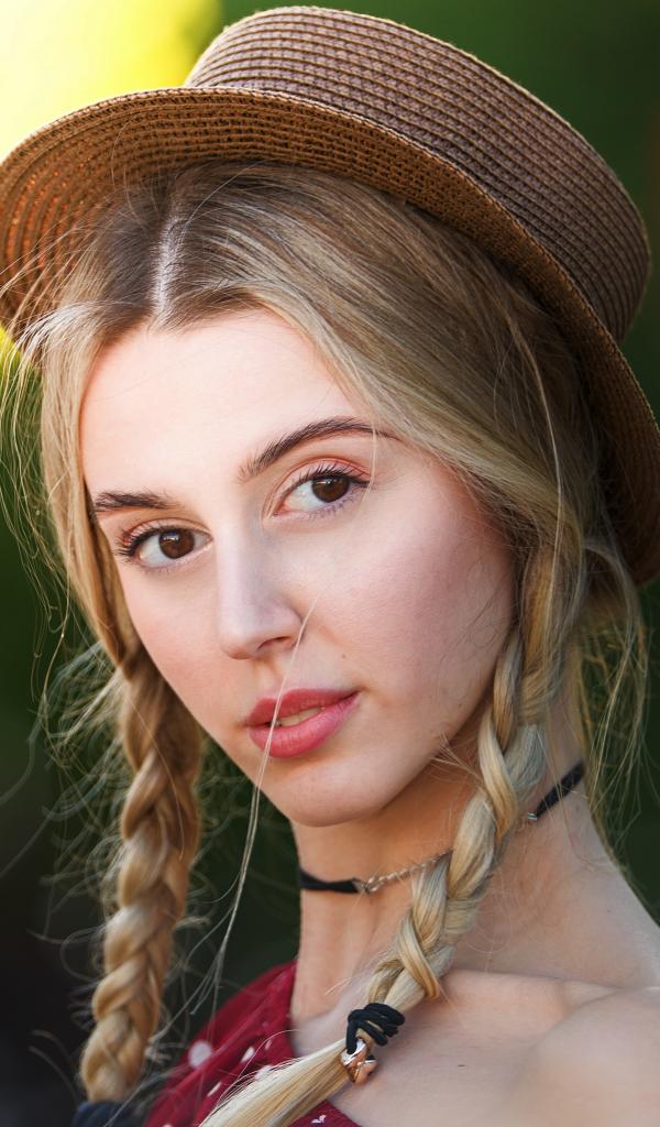 Wallpaper Brown-eyed girl with braids on her head in a hat