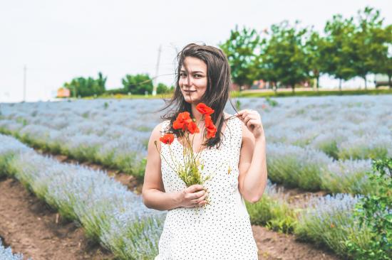 Wallpaper Beautiful girl in a dress with a bouquet of poppies