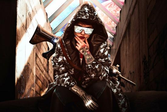 Wallpaper Girl with a gun in a hoodie and glasses
