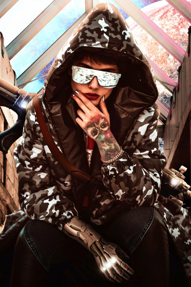 Wallpaper Girl with a gun in a hoodie and glasses