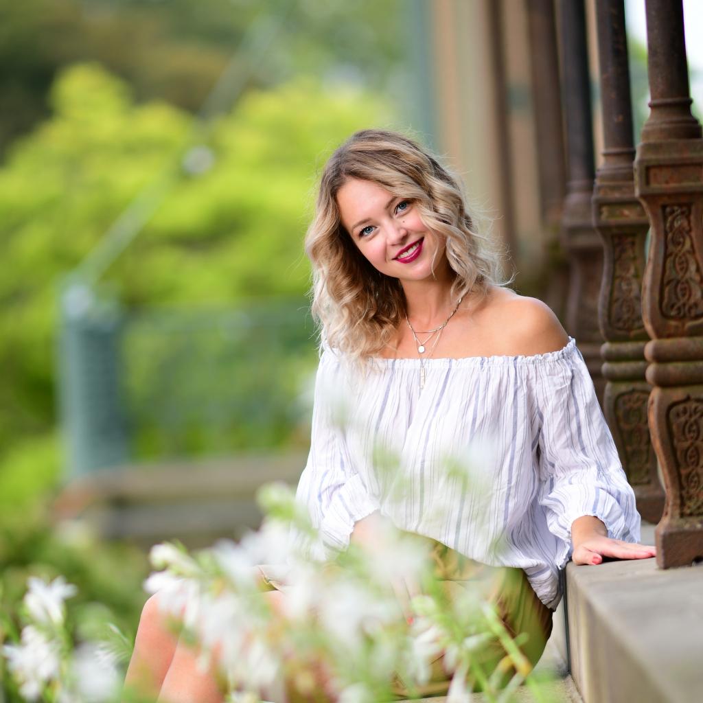 Wallpaper Beautiful girl in a white hat sitting on the steps