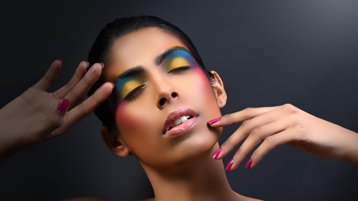 Wallpaper Beautiful girl with bright makeup with closed eyes.