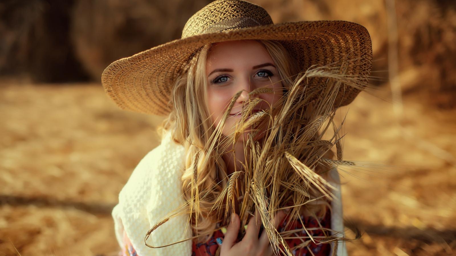 Wallpaper Beautiful girl in a hat with ears in hand