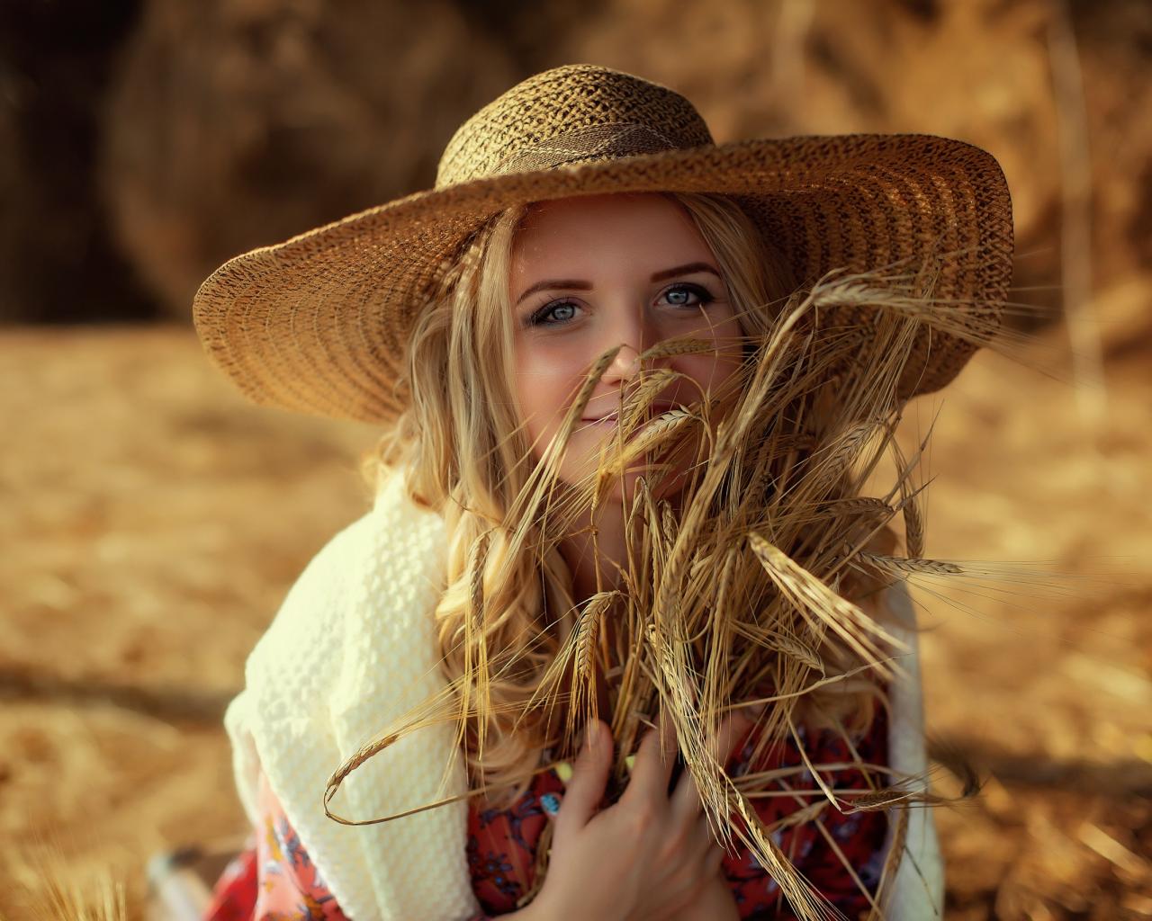 Wallpaper Beautiful girl in a hat with ears in hand