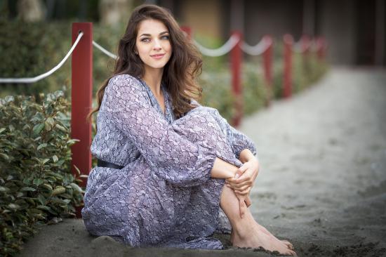 Wallpaper Beautiful girl in a dress sits on the sand
