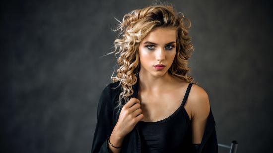 Wallpaper Beautiful girl with a hairstyle in a black dress
