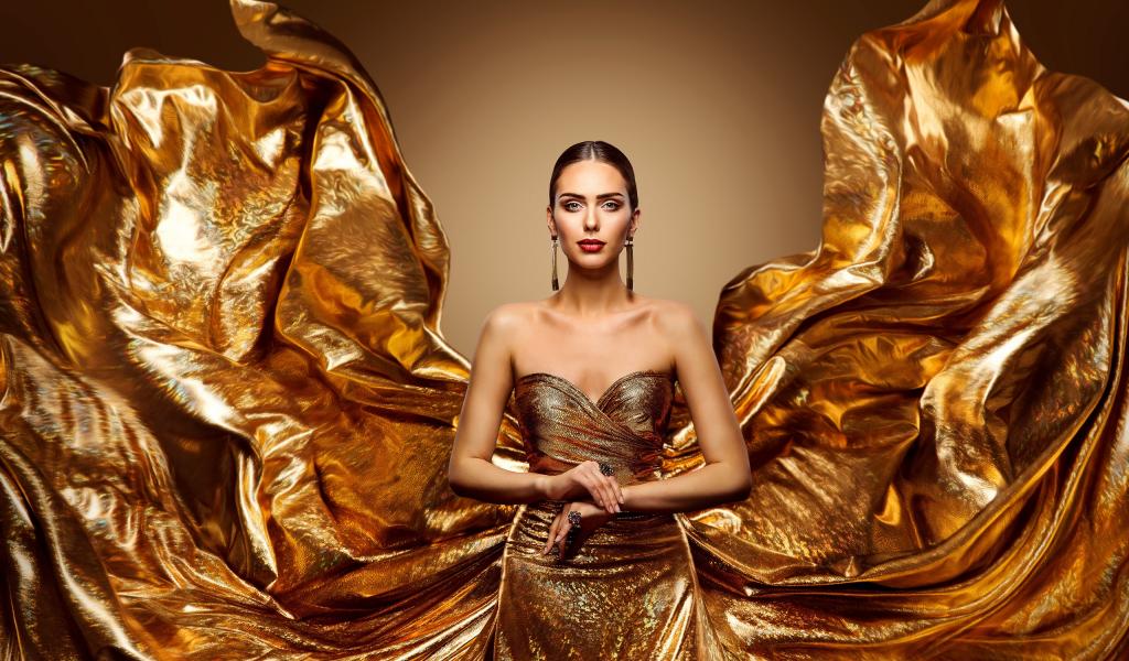 Wallpaper Stylish girl in a beautiful golden dress