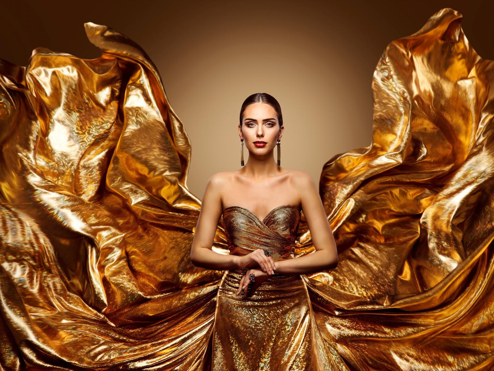 Wallpaper Stylish girl in a beautiful golden dress