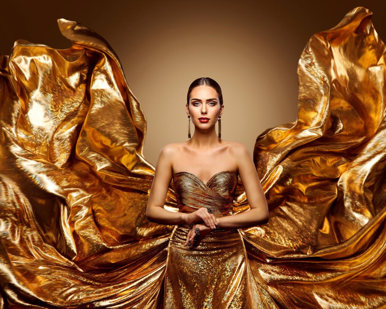 Wallpaper Stylish girl in a beautiful golden dress
