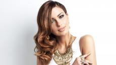 Wallpaper Young brown-eyed girl with bracelets in her arms on a white background