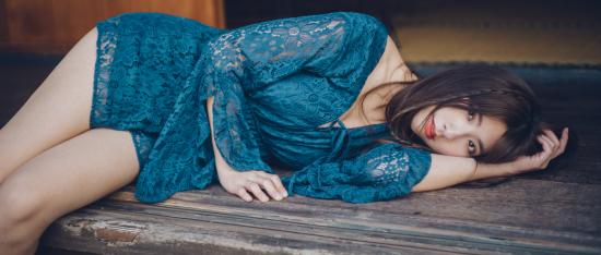 Wallpaper Beautiful Asian girl in a dress lies on the floor