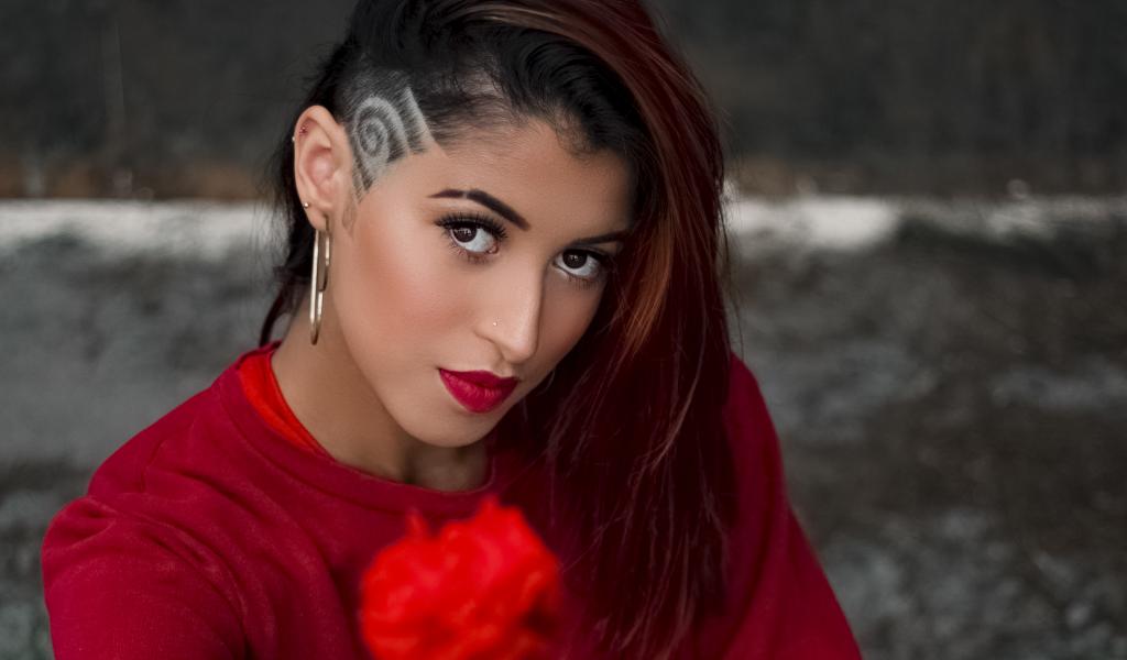 » Wallpaper Girl with a haircut holds a rose in her hand