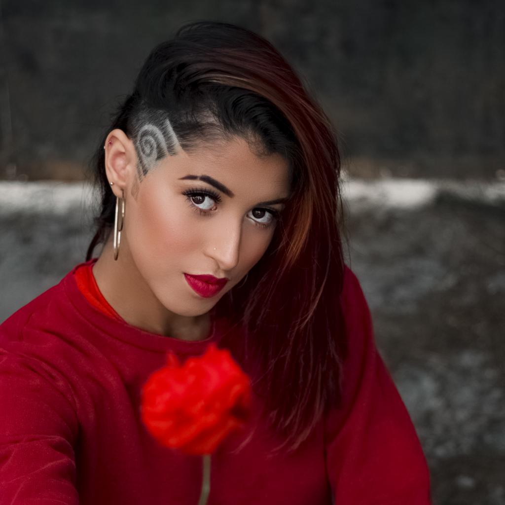 » Wallpaper Girl with a haircut holds a rose in her hand