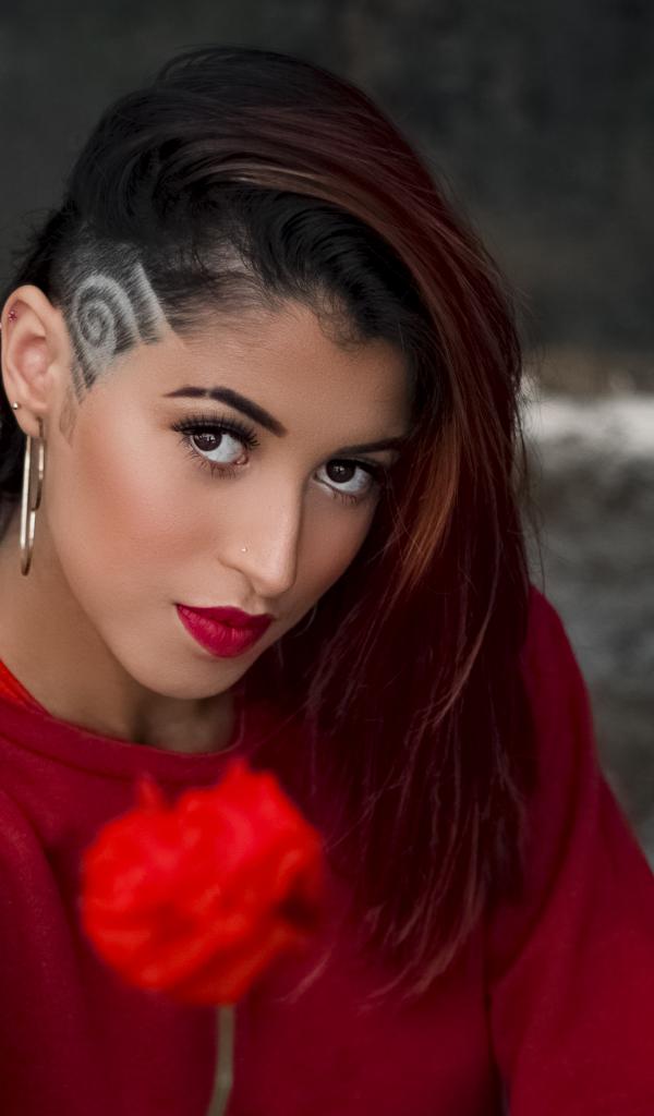 » Wallpaper Girl with a haircut holds a rose in her hand
