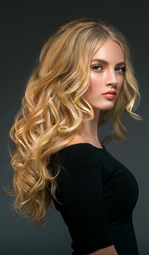 Wallpaper Stylish blue-eyed long-haired girl in a black dress