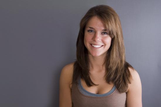 Wallpaper Smiling cute girl against a gray wall