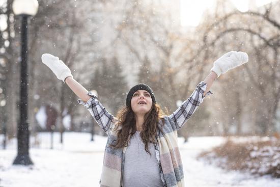 Wallpaper Beautiful girl in a warm hat, sweater and mittens in winter