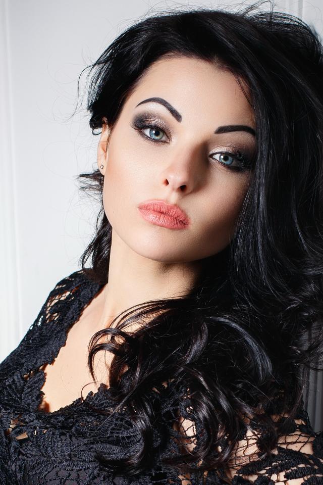 Wallpaper Beautiful blue-eyed brunette in a black dress