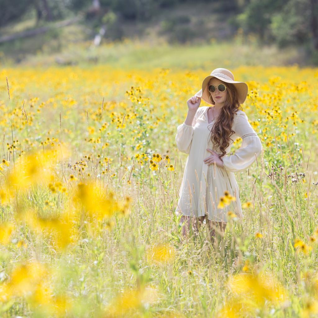 Wallpaper Beautiful girl in a hat on a field with yellow flowers