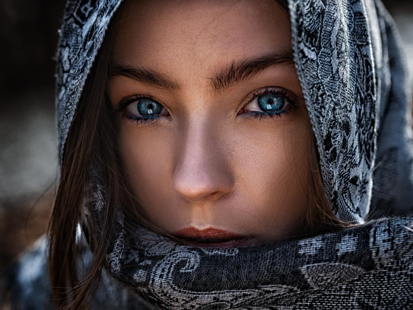 Wallpaper Beautiful blue-eyed girl in a stole