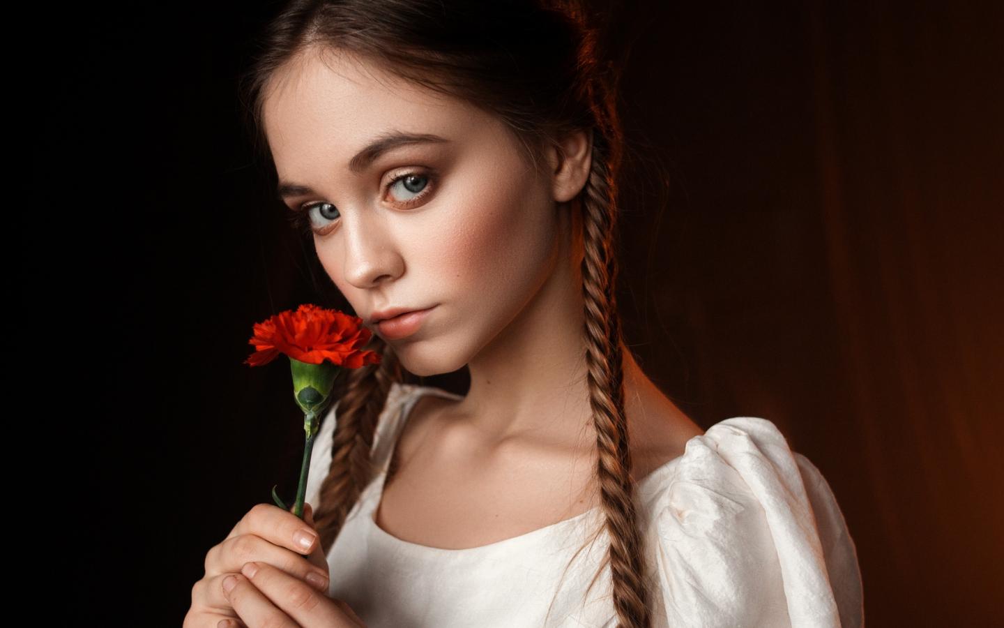 Wallpaper Beautiful girl with a red carnation in hand