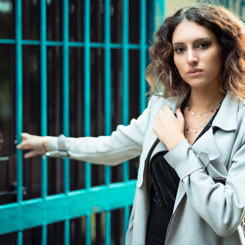 Wallpaper Beautiful girl in a coat stands at the fence