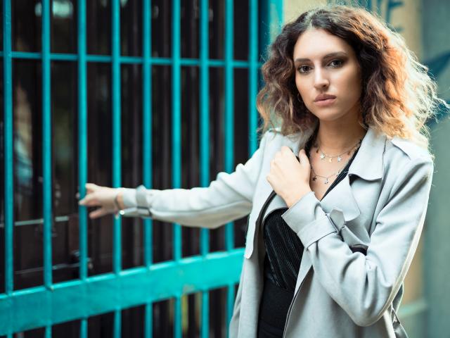 Wallpaper Beautiful girl in a coat stands at the fence