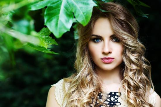 » Wallpaper Blue-eyed blonde near green leaves