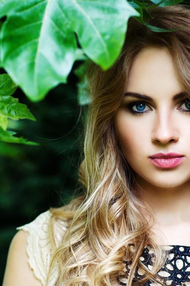 » Wallpaper Blue-eyed blonde near green leaves