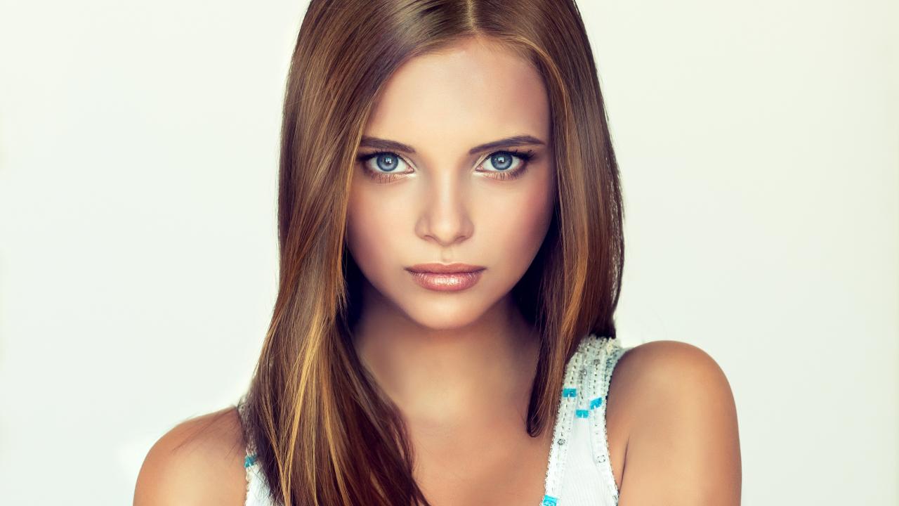 Wallpaper Beautiful tender blue-eyed girl on a gray background