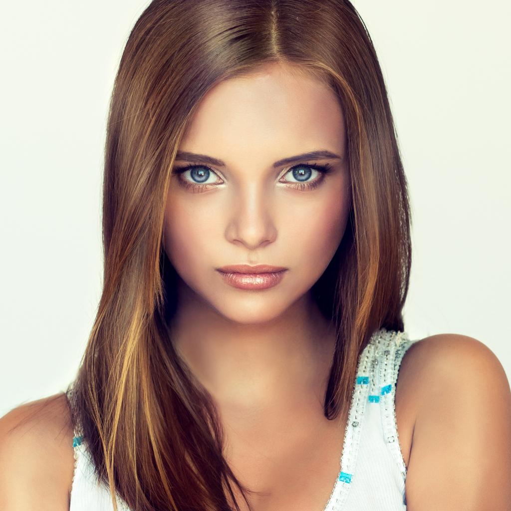 Wallpaper Beautiful tender blue-eyed girl on a gray background