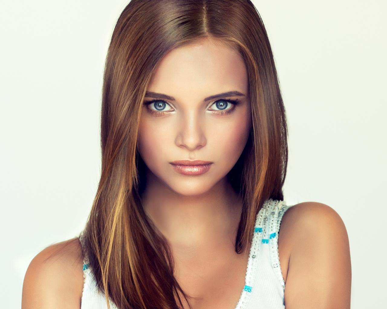 Wallpaper Beautiful tender blue-eyed girl on a gray background