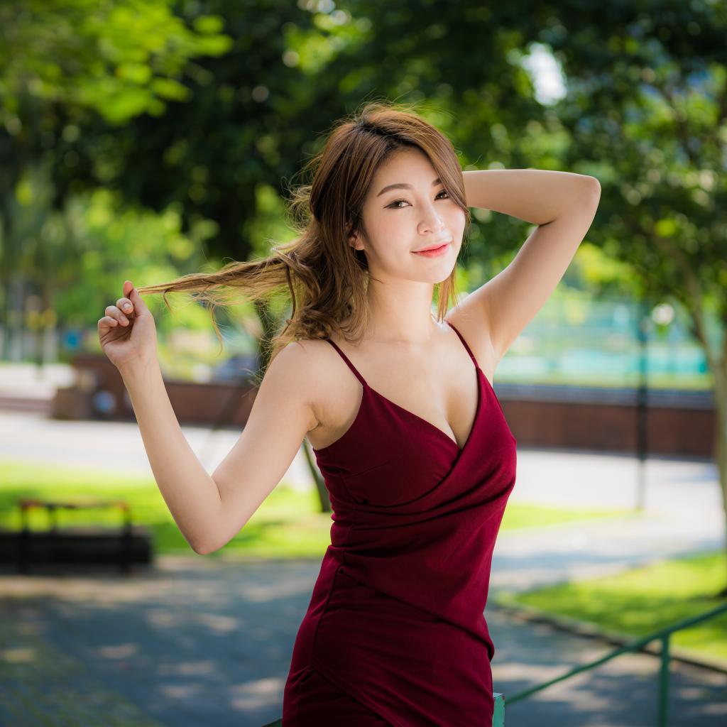 Wallpaper Beautiful young asian in red dress