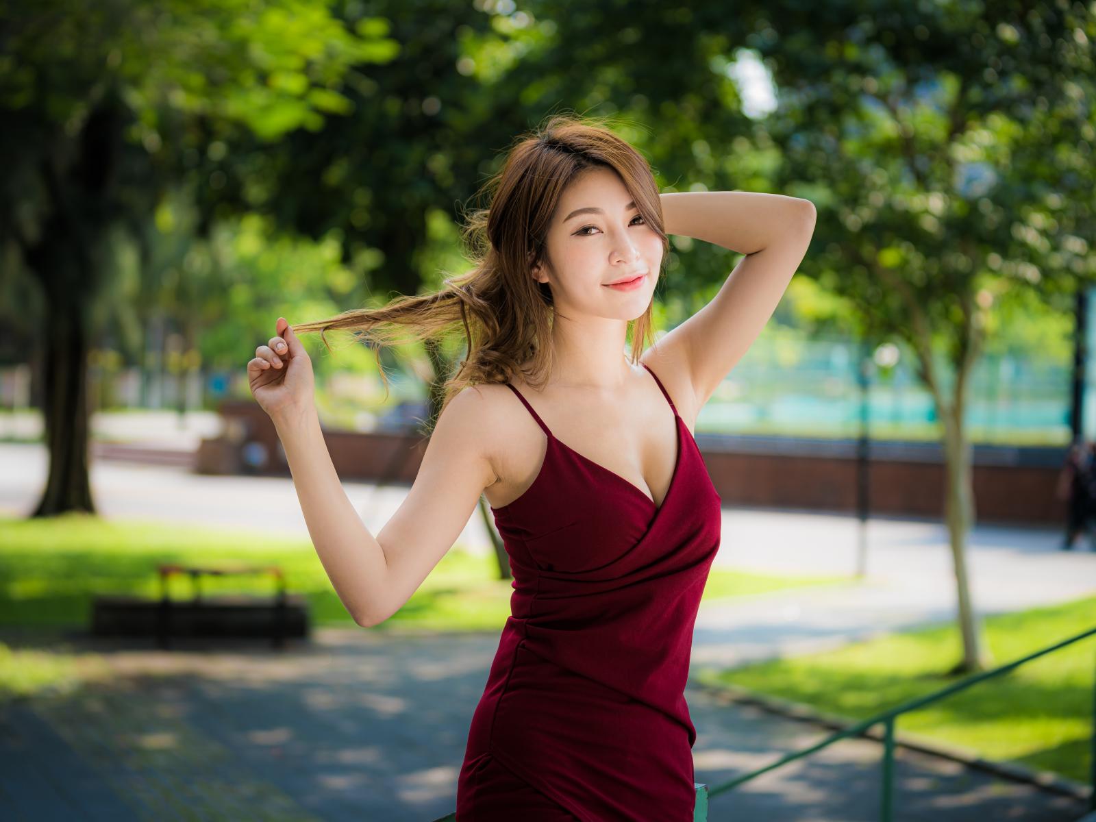 Wallpaper Beautiful young asian in red dress