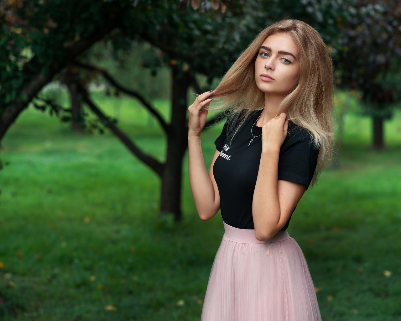 Wallpaper Beautiful girl in a suit in the park