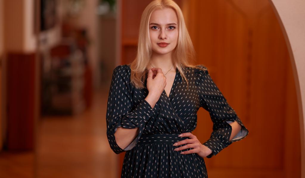 Wallpaper Beautiful blonde girl in a black dress