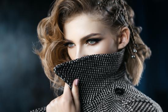 Wallpaper Beautiful girl with a hairstyle in a coat