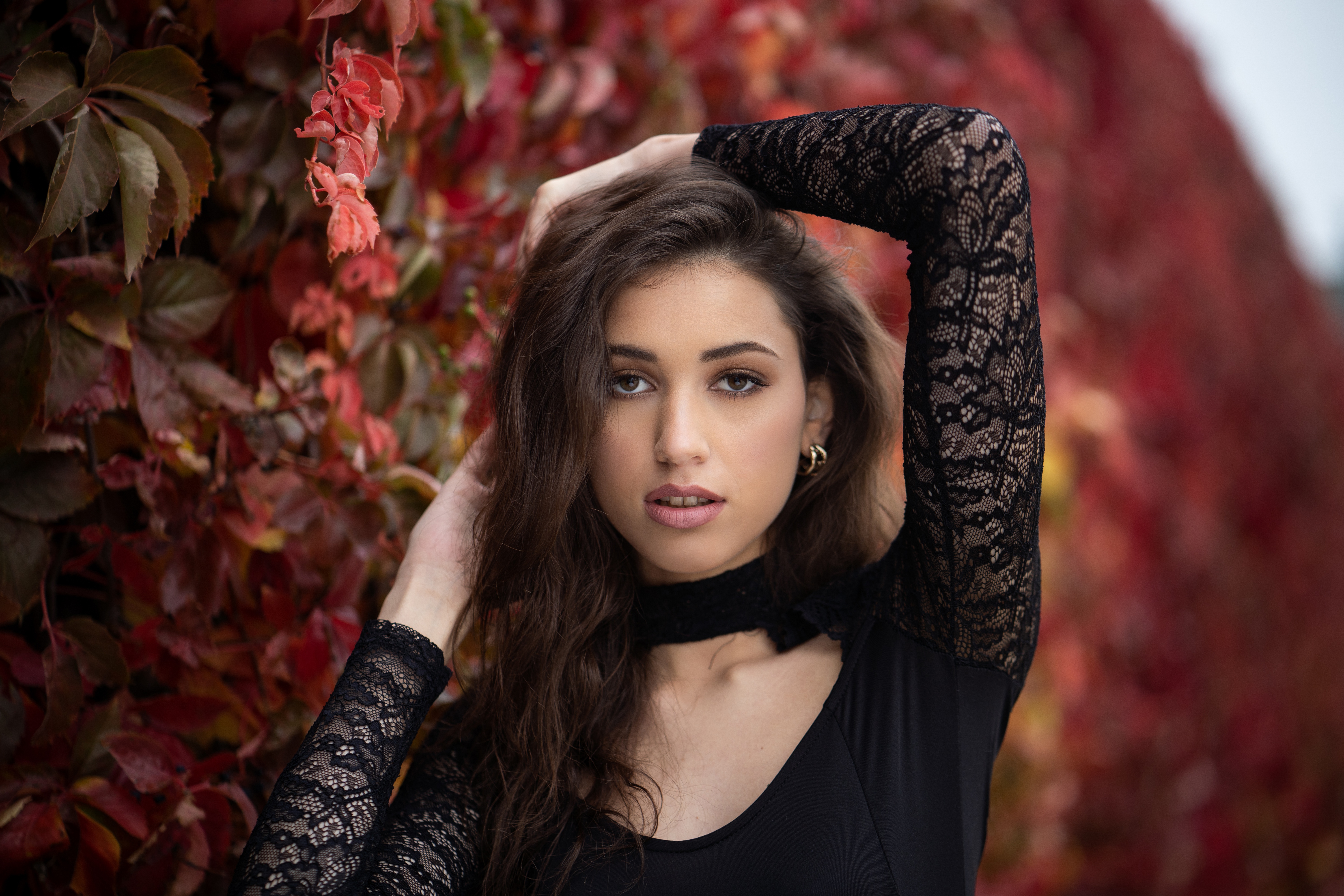 Wallpaper Beautiful long-haired brown-haired woman in a black dress