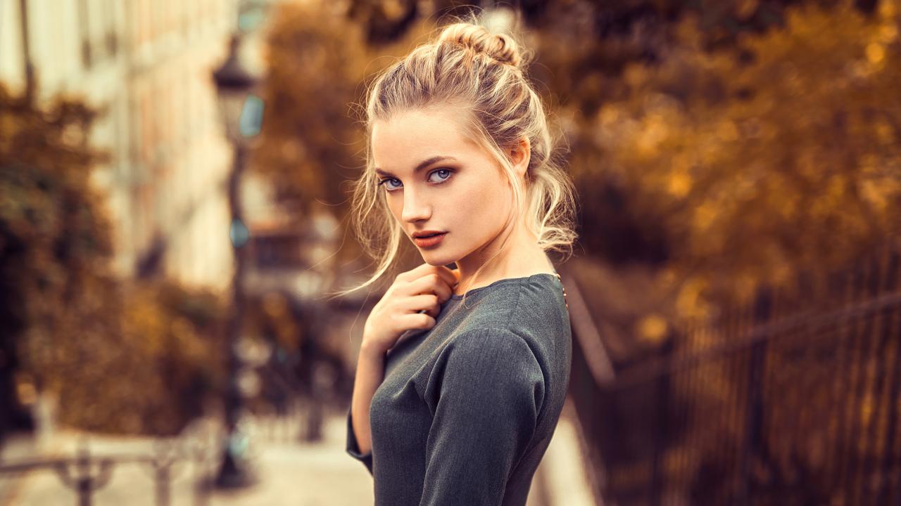 Wallpaper Beautiful blue-eyed blonde in a gray dress