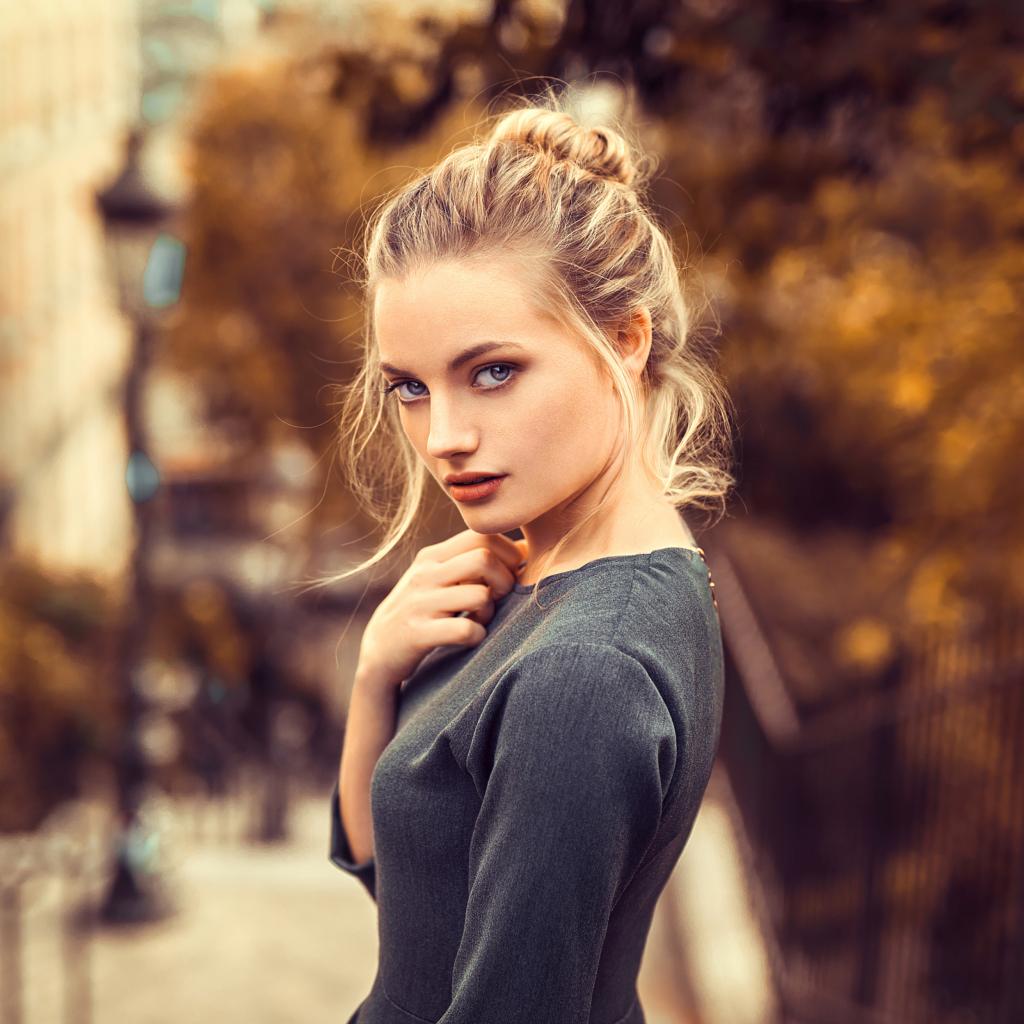 Wallpaper Beautiful blue-eyed blonde in a gray dress