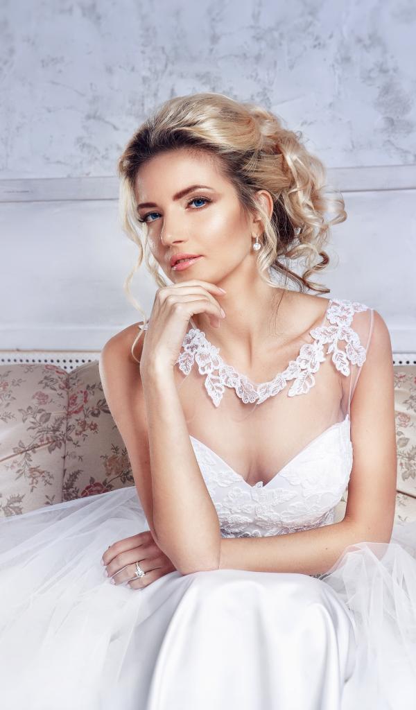 Wallpaper Beautiful blue-eyed blonde in a white wedding dress