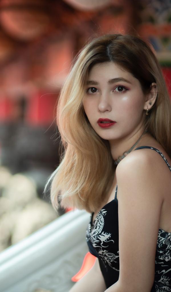 Wallpaper Sad look of a young slender girl
