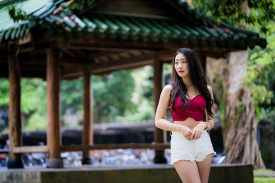 Wallpaper Beautiful girl in white shorts in a park